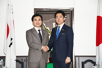 小泉進次郎防衛相は1月30日、海自横須賀基地で韓国の安圭伯(アンギュベク)国防部長官と日韓防衛相会談を行った。会談では毎年相互に訪問し、地域の平和と安定を維持するために協力していくことで一致した。その後両大臣は、安長官が毎日行っているという卓球で汗を流し、ラリーのように親密な関係が長く続くよう思いを込めた。(三輪直史)・・・