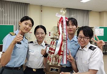 スポーツ交流で総合優勝した日韓混合の第3候補生隊(いずれも8月7日、前川原駐屯地)