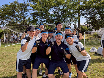 韓国の候補生(前列中央2人)と共に綱引きやリレーで共に汗を流した
