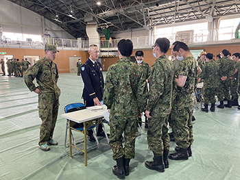 そんな中、302中隊の職種「警務科」の説明は午前11時40分から約15分間、小平学校警務科部の最先任上級曹長・種市寿准尉が行い、警務科職種の魅力について紹介。