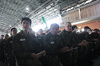 4月15日、神奈川県横須賀市の陸上自衛隊武山駐屯地では、約3週間前に入隊した18~33歳までの隊員約800人に向けた「職種説明会」が行われていた。