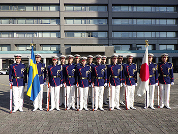 昨年、入隊した302保警中隊員が初めて特別儀仗デビューを果たした時の記念写真(12月4日、防衛省)=陸自警務隊本部提供