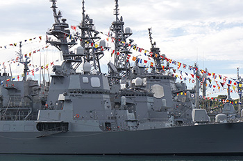 基地がこの日のために用意した艦は、護衛艦「てるづき」「くまの」・・・