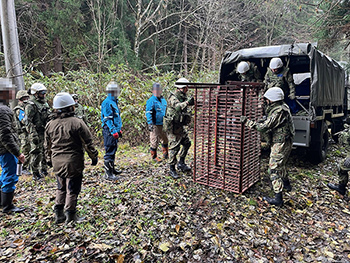 5日から開始された自衛隊の後方支援では、陸自第21普通科連隊(秋田)が200キロ近い重さがある箱わなの運搬などを担っている。
