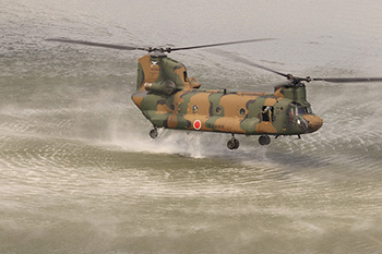 【相馬原】第12ヘリコプター隊の第2飛行隊は9月16日、霞ケ浦離着水場でCH47Jヘリの離着水訓練を実施した。