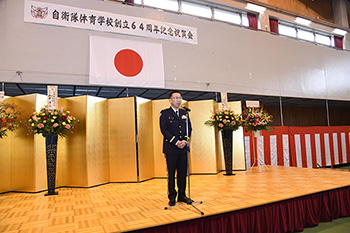 オリンピックアスリートの輩出や部隊の体育格闘指導者の育成を担う「自衛隊体育学校」は10月11日、同校の三宅記念体育館で「創立64周年記念祝賀会」を開催した。祝賀会では来年2月にイタリアで開催される「ミラノ・コルティナ冬季五輪」への出場を目指すバイアスロンやクロスカントリースキーの9人の選手が紹介され、一人ひとりが決意表明を行った。(寉見陽平)