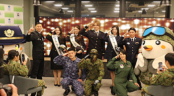 自衛隊東京地方協力本部(市ヶ谷)は11月10日、東京都渋谷区宮益坂に渋谷募集案内所「SHIBUYA J LOUNGE」を開所した。若者の街・渋谷に募集拠点を設けることで、若い人材の確保につなげる狙い。同日はオープン記念イベントとしてファンミーティングが開催され、護衛艦や海外にいる防衛駐在官などと中継をつないだり、自衛官の制服を着たモデルによるファッションショーを行うなど、自衛官の魅力を存分にアピールした。イベントの模様はユーチューブでライブ配信され、一般視聴者からの質問などもリアルタイムで受け付けた。(中尾侑)