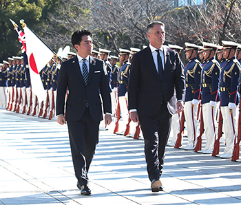 特別儀仗隊の栄誉礼を受ける小泉防衛相(左)とオーストラリアのマールズ副首相兼国防相(12月7日、防衛省)