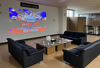 新たにオープンした「ジョンソン・ラウンジ」。4K搭載のホームシアターでは映画館のようなサウンドと映像が楽しめるようになった