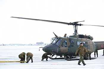 情報収集に向かう第11飛行隊(丘珠)の多用途ヘリコプターUH1(12月9日、札幌市)=11旅団提供