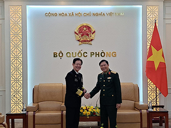 齋藤聡海上幕僚長は、12月10日から13日まで、ベトナムを訪問した。創設70年を迎えた海軍から招待を受けて、11日に軍参謀総長兼国防次官のグエン・タン・クオン大将と会談し、海軍種間の協力を強化する方針を確認した。