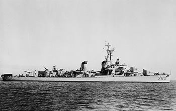 米サンフランシスコで定期整備を終えた米駆逐艦「ウォーク」(1952年、2月13日)=米国立公文書館提供