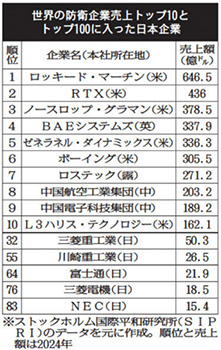 防衛企業 売上高最高 SIPRI調査(2025年12月1日)