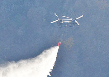 自衛隊のヘリコプターが11日からの2日間で延べ22回の空中消火を実施した。伊勢原市は12日午後4時50分に鎮火を宣言した。これにより、自衛隊は撤収した。