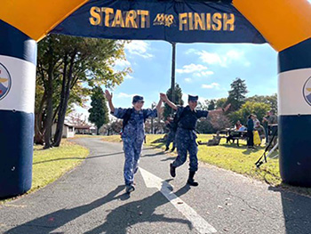 【航プロ隊=厚木】11キロの荷物を背負い、30キロメートルを制限時間内にゴールする競技「ノルウェージャン・フットマーチ」が11月15日、海自厚木航空基地で開かれた。これは1915年、第1次世界大戦下のノルウェー陸軍が兵士の忍耐力、行動力、戦場持久性を評価する目的で創設したのが起源とされる。