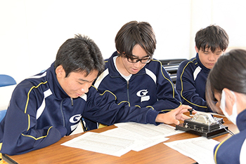 モールス信号を体験する生徒たち(滝ヶ原駐屯地)
