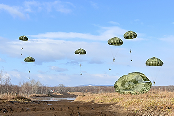 日英の空挺隊員が日本で初めて共同空挺降下を行った(11月11、12日、いずれも北海道札幌市、北広島市、恵庭市、千歳市にまたがる北海道大演習場)=陸自提供