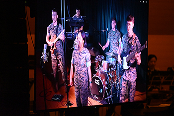不参加となった米海兵隊第3海兵遠征軍音楽隊は、ビデオメッセージで参加した(いずれも大分県くすまちメルサンホール