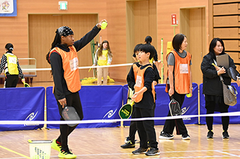 イベントには幅広い年齢層の日米約40人が集まり、テニス、卓球、バドミントンを組み合わせた米国発祥のラケットスポーツ「ピックルボール」で汗を流し、交流を深めた。