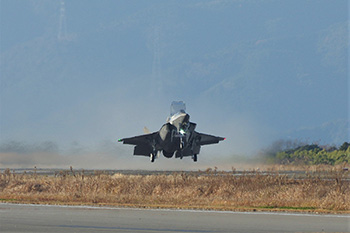 新田原基地でも1月6日、昨年8月から段階的に配備されている最新鋭のステルス戦闘機F35Bが初の「飛行初め」に臨んだ。参加した2機は午後3時50分から5時10分まで訓練に当たり、基地周辺空域を飛行して1年間の安全を祈念した。