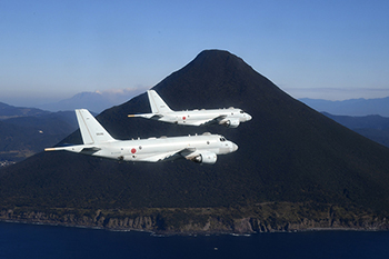 大隅海峡から帰投するP1(1月9日、鹿児島県指宿市)=1空群提供