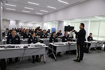 指導部を含む研修参加者に統合の考えなどについて訓話する松永副幕長(1月13日、防衛省)