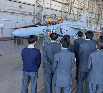 T4(練習機)の説明を受ける生徒ら(昨年12月1日、入間基地)