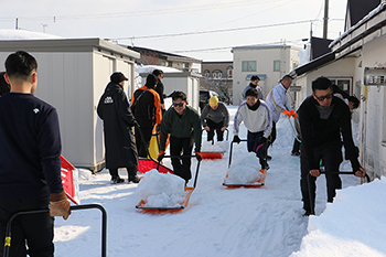 基地隊員約350人は2月14日、市営住宅の除雪活動「スノーバスターズ2026」に加わった。早朝からスコップやスノーダンプを手に、参加者と声を掛け合いながら道路や屋根の雪をかき出した=写真上。住民からは「いつも助かる」と感謝の言葉が寄せられた。高齢者世帯への奉仕活動の一環で、毎年、地域と共に冬を乗り越えている・・・