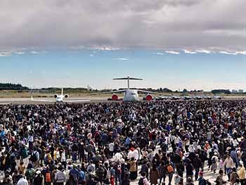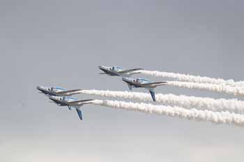 空自入間基地で11月3日、「入間航空祭」が開催された=写真。来場者数は昨年を上回る約26万人を記録。多くの航空ファンや親子連れがブルーインパルスやC2輸送機などの展示飛行を楽しんだ。