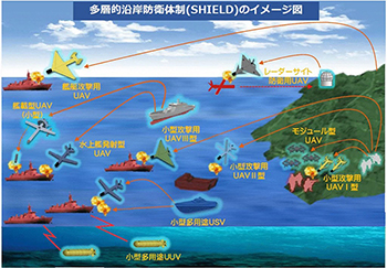 ドローンを活用した多層的沿岸防衛強化構想「SHIELD(シールド)」(防衛省2026年度予算案資料から)